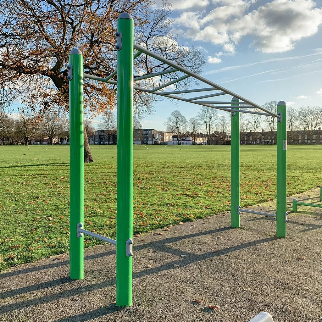 Everything is so close together that it was hard to get photos of everything individually. Here’s a photo of the whole outdoor gym, and below are the only two pieces of equipment you’re likely to use for calisthenics training.