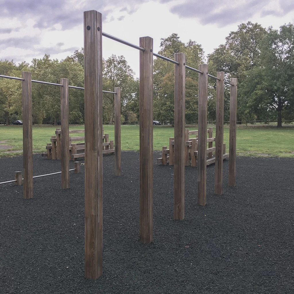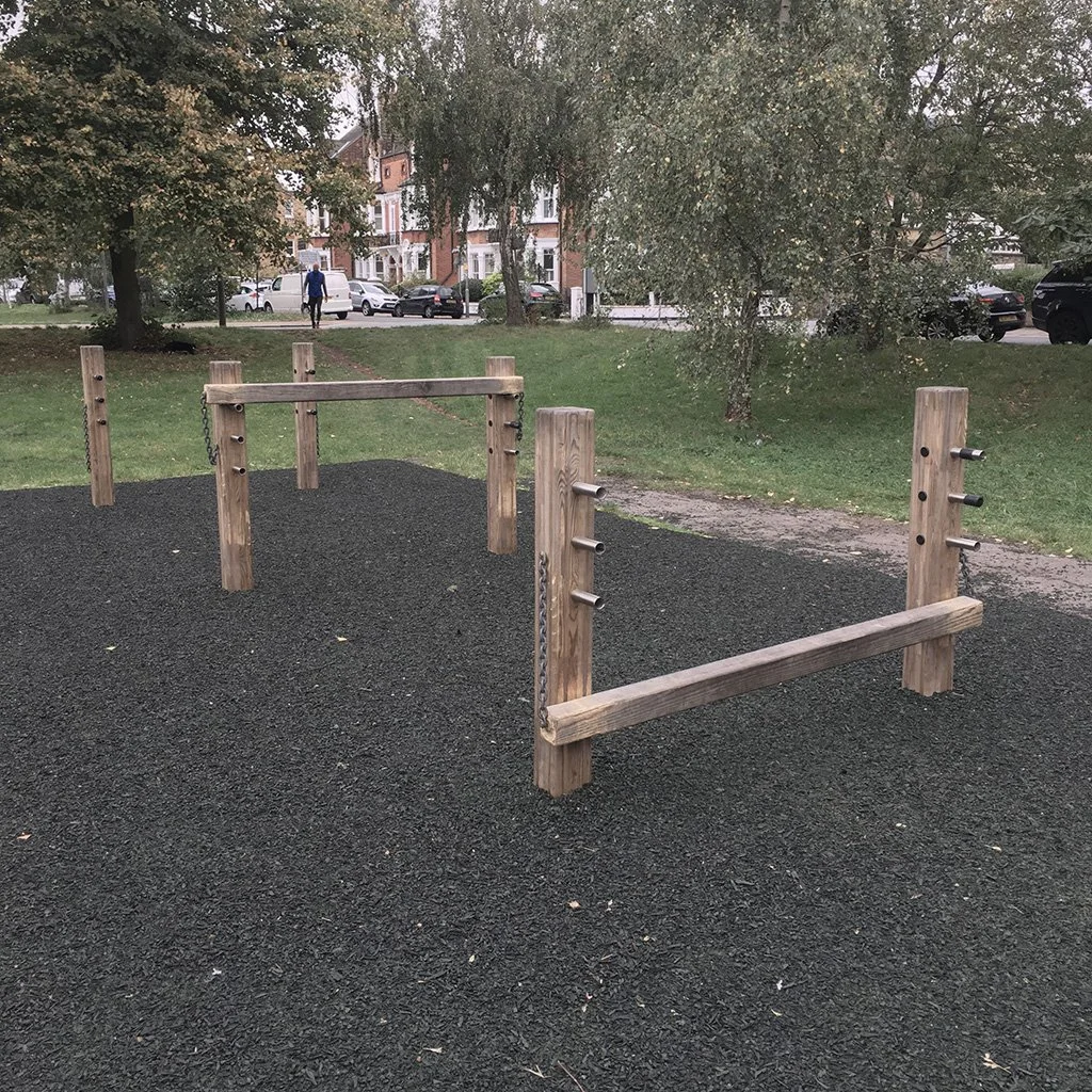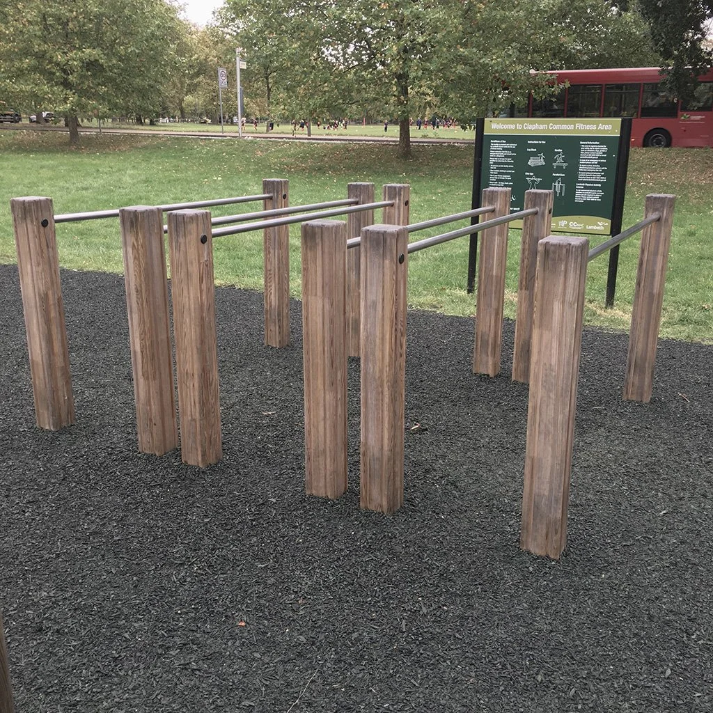 The longer bars are really good for push ups. The short bar is too short, but you can use the middle two posts as parallettes, for deeper push ups. Good addition to the park.