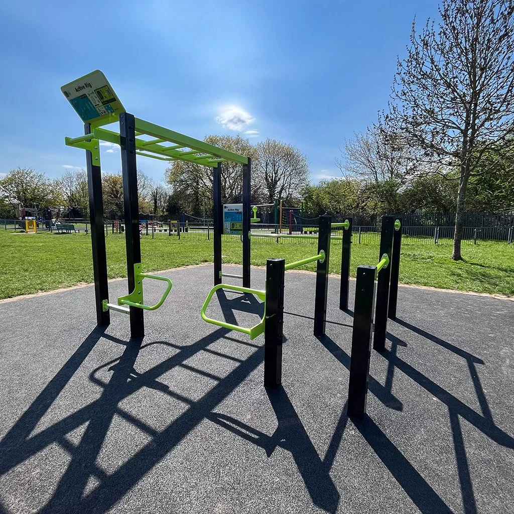 The monkey bars are too small to use, but there’s a mounted pull up bar (on the far side of the photo) that isn’t bad. It’s a good height, but the bar is really thick.